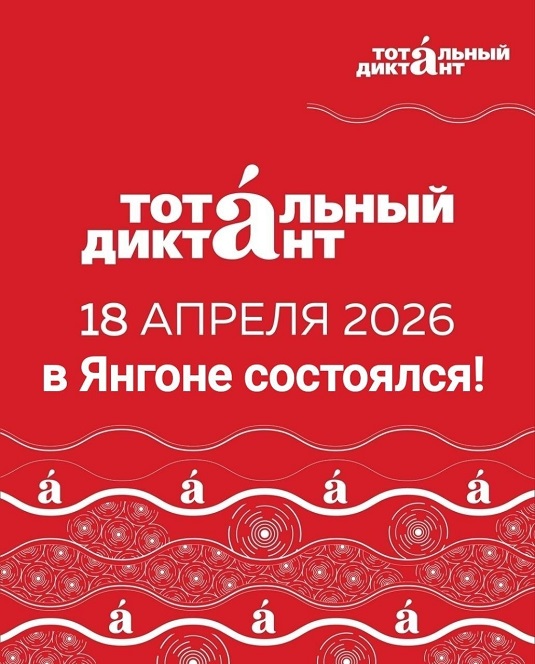 18 апреля Посольство России в Мьянме в очередной раз присоединилось к Всемирной образовательной акции «Тотальный диктант» и «Недиктант. Дети». В этот день десятки стран и тысячи городов объединились, чтобы написать один и тот же текст, проверив свою грамотность и показав, что русский язык — это не только свод правил, но и живая, объединяющая сила.